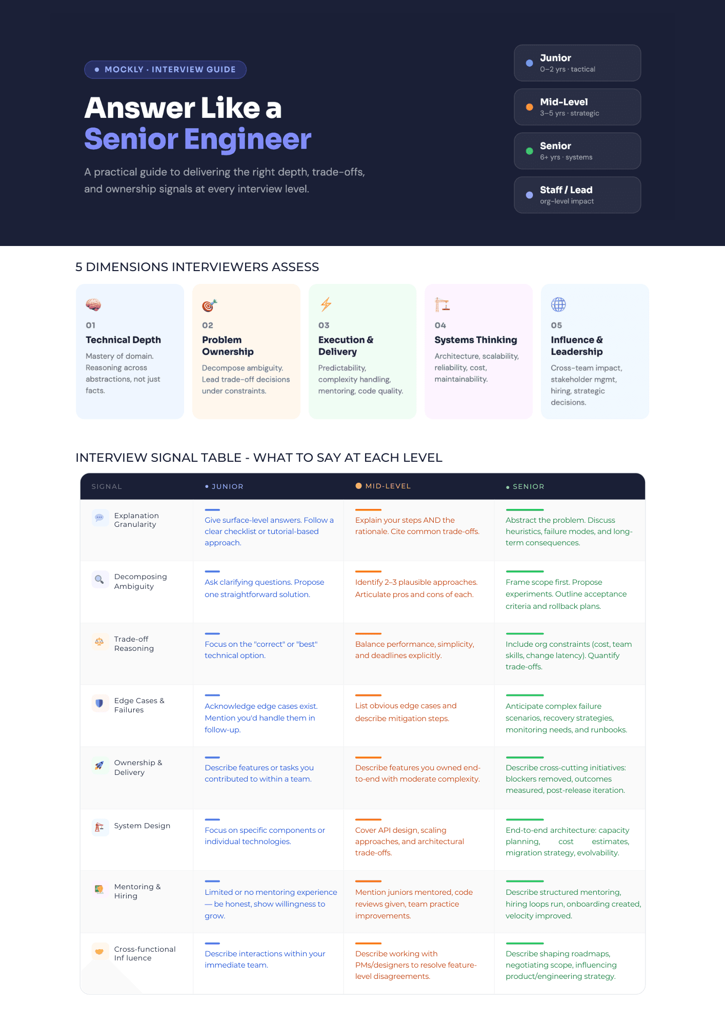 Below is a practical cheat sheet showing the signals interviewers look for at each level.